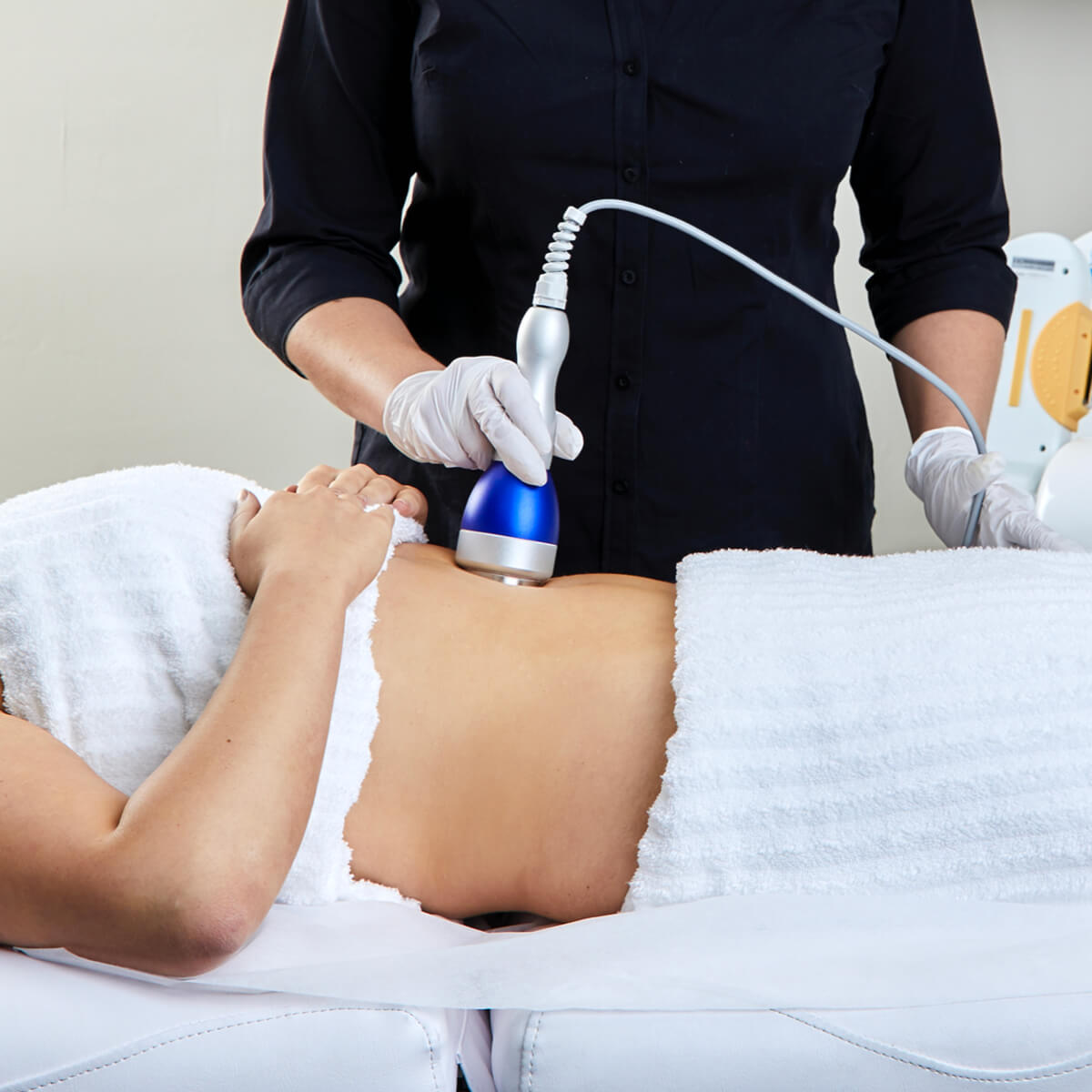 Ultra-sound Fat Cavitation with Radio Frequency Skin Tightening is a non-invasive treatment that targets unwanted fatty deposits for