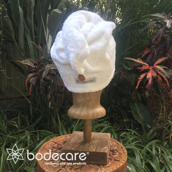 The Bodecare Towelling Hair Wrap is a luxuriously soft and absorbent turban crafted from thick 100% terry cotton, delivering spa-level convenience for efficiently drying your hair. Featuring a secure bamboo button-and-loop closure, it stays comfortably in place—perfect for post-shower routines, applying masks, or hot oil treatments that benefit from gentle heat and moisture retention. Awarded Best in Beauty by Beauty Heaven 2019, this wrap combines ethical craftsmanship with everyday indulgence. Whether you're rushing through your morning routine or indulging in evening pampering, this hair wrap brings both functionality and comfort.