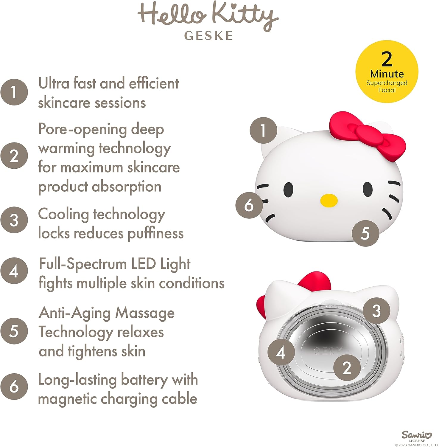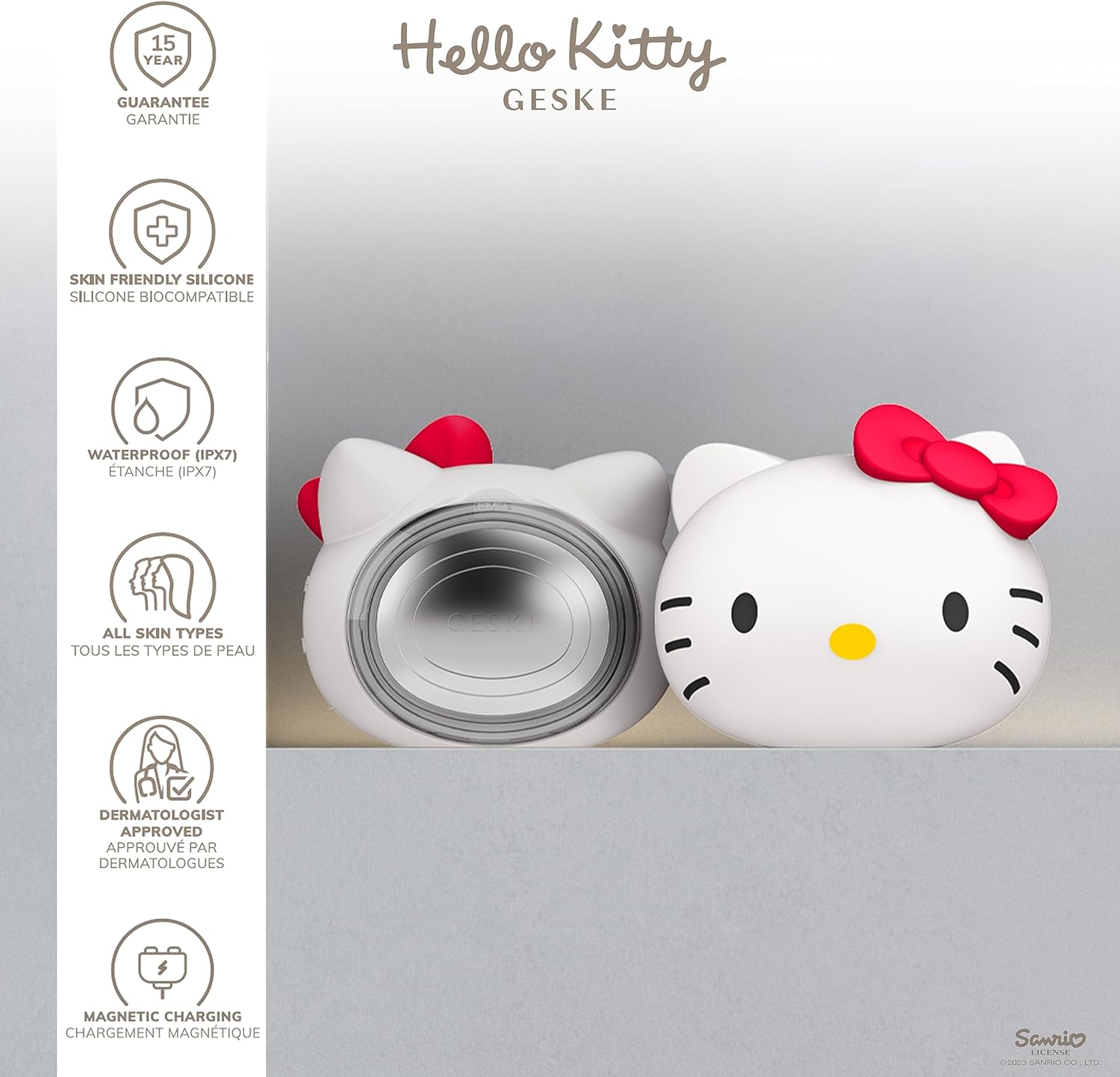 The GESKE Hello Kitty Sonic Warm & Cool Mask 8-in-1 is a cute yet powerful skincare essential, designed to hydrate, tone, and rejuvenate your skin with advanced beauty technology. Featuring thermotherapy, cryotherapy, sonic pulsations, and LED light therapy, this multi-functional mask helps to open and close pores, enhance skincare absorption, and boost circulation for a radiant, refreshed complexion. The adorable Hello Kitty design adds a fun, stylish touch to your self-care routine, making skincare both effective and enjoyable.