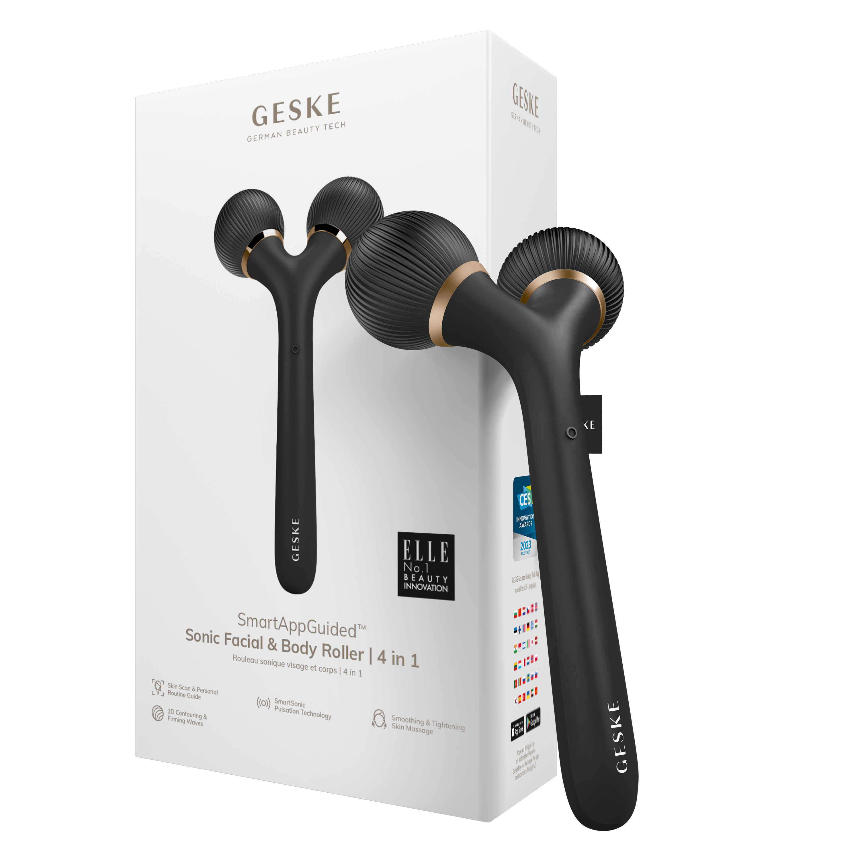 The GESKE Sonic Facial & Body Roller 4-in-1 is a multi-purpose beauty tool designed to firm, tone, and refresh your skin from head to toe. Using sonic pulsations, micro-vibration massage, and targeted contouring technology, this device helps boost circulation, reduce puffiness, and improve skin elasticity. Whether you're looking to define facial contours, relax muscle tension, or enhance product absorption, this roller delivers a luxurious spa-like experience in just minutes. Say goodbye to dull, tired skin and hello to a smoother, firmer, more radiant glow!
