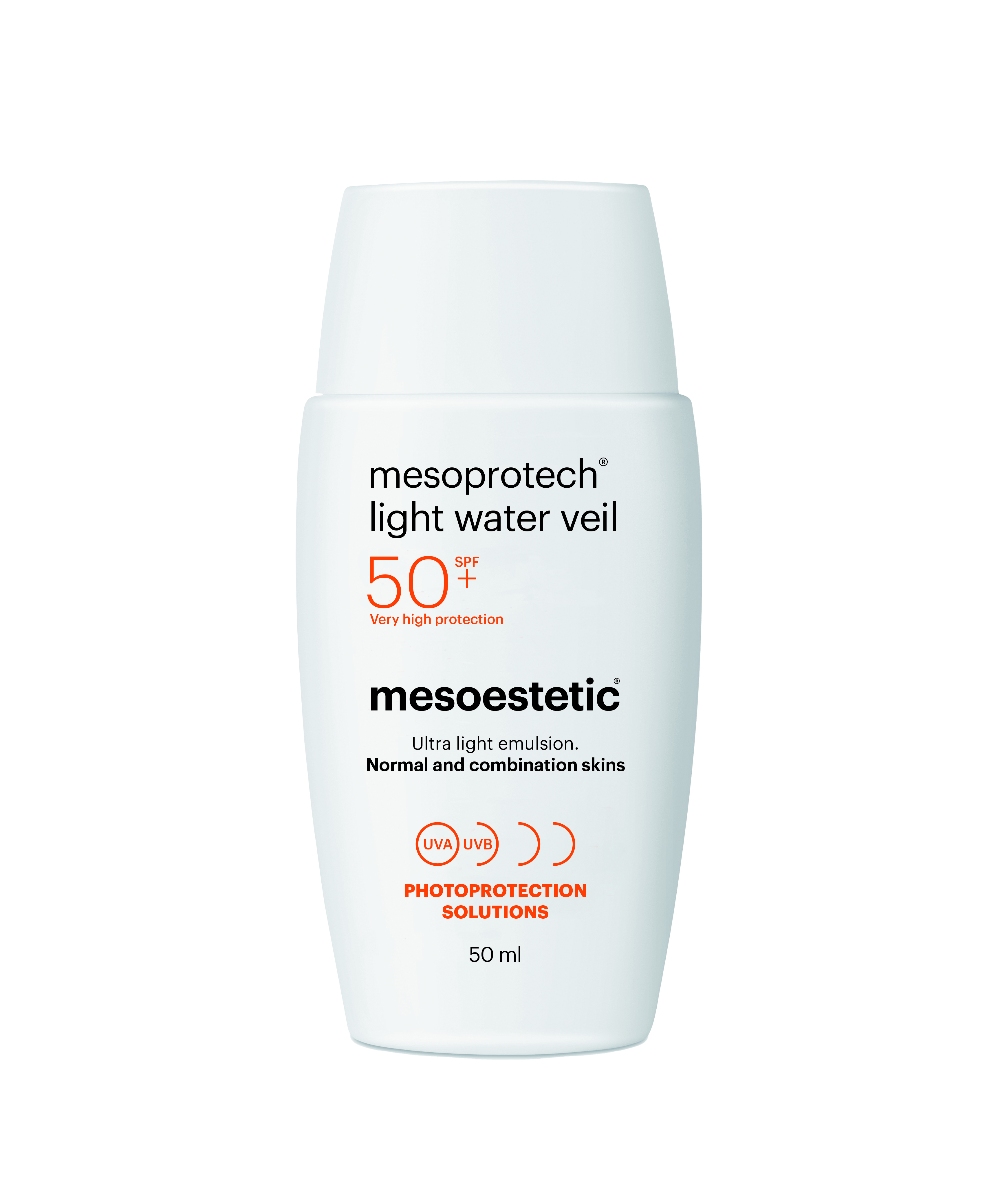 Mesoestetic Light Water Antiaging Veil is an ultra-light, fast-absorbing sunscreen that provides SPF 50+ broad-spectrum protection while delivering deep hydration and anti-aging benefits. Infused with hyaluronic acid and powerful antioxidants, this innovative formula defends against UVA, UVB, HEV (blue light), and infrared radiation, preventing premature aging and skin damage. Its silky, water-like texture leaves the skin feeling fresh, soft, and beautifully radiant—never greasy or heavy.