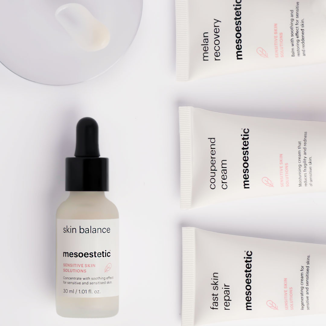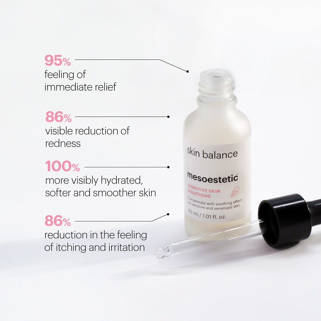 Mesoestetic Skin Balance is a soothing serum designed to reduce sensitivity, calm irritation, and strengthen the skin barrier. Formulated with a powerful blend of anti-inflammatory, antioxidant, and barrier-repairing ingredients, this lightweight yet deeply nourishing serum helps alleviate redness, dryness, and discomfort. With regular use, it enhances skin resilience, providing long-lasting hydration and protection against environmental stressors. The result? A calmer, healthier, and more balanced complexion.