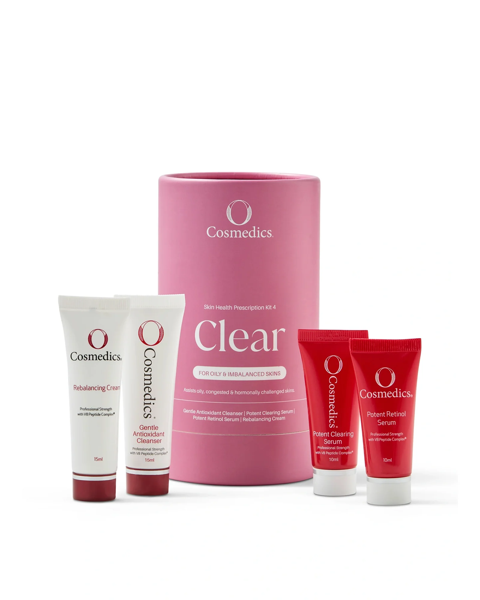 Rebalancing Cream 15g: A lightweight, oil-free anti-ageing lotion formulated with a unique blend of ingredients to balance oily skin, treat breakouts, and reduce the appearance of fine lines and wrinkles. V8 Peptide Complex® relaxes facial muscles, leaving the skin balanced and refreshed.