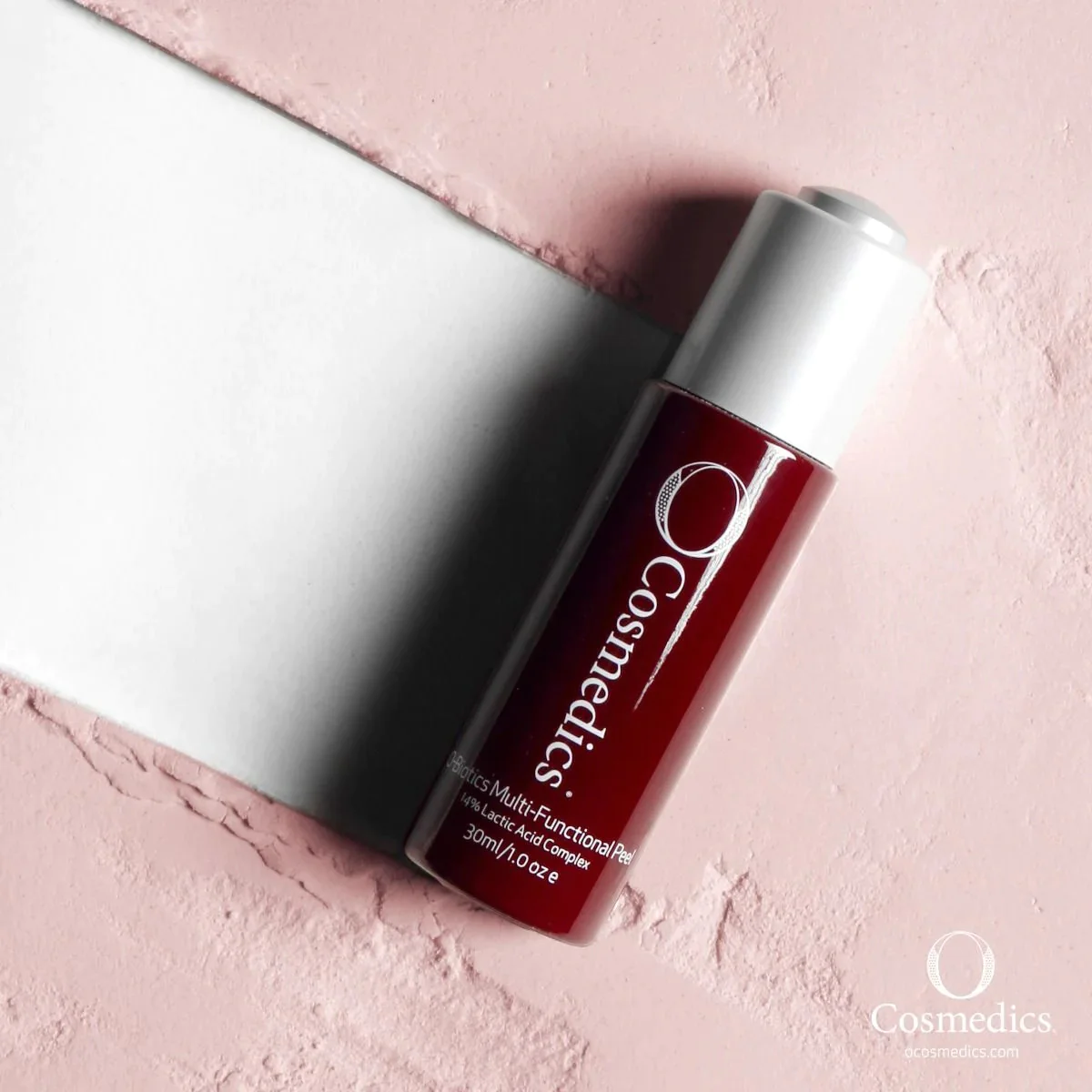 The O Cosmedics Multi Functional Peel is a revolutionary skincare treatment that rejuvenates and revitalises your skin, revealing a radiant and youthful complexion. Powered by a potent blend of natural fruit acids with 14% Lactic Acid Complex, this chemical formulation gently exfoliates the skin, effectively removing dead skin cells and promoting cell turnover. As a result, it reduces the appearance of fine lines, wrinkles, and age spots, while improving skin texture and tone. This multi-tasking peel also helps to unclog pores, minimise the appearance of enlarged pores, and reduce acne breakouts, leaving your skin smoother and clearer.